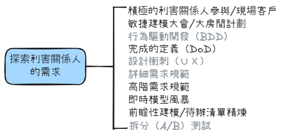 舉個例子:「探索利害關係人的需求」這個決策點,會列出以下選項: